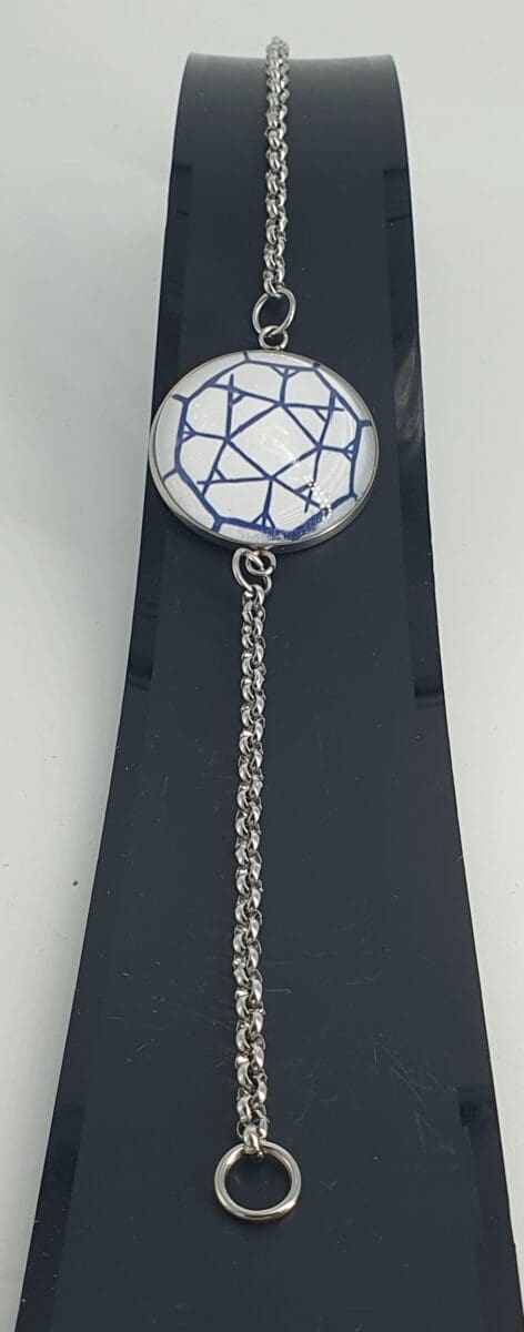 Erterkjede armband i kirurgisk stål med samiskinspirert Àrran i 25 mm Ø glasscabochon