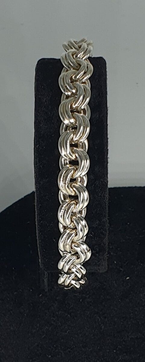 Grovt dobbelt ringarmband 925 sølv håndlaget 20 cm