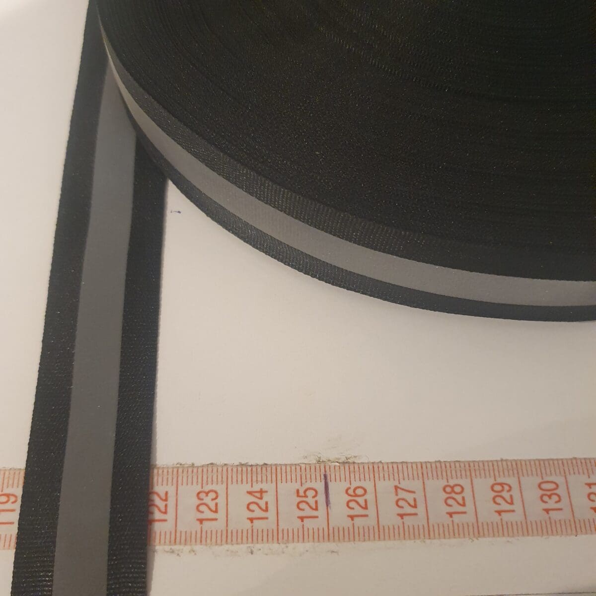 Reflexband 25 mm. Sort. Bred stripe. Sy selv